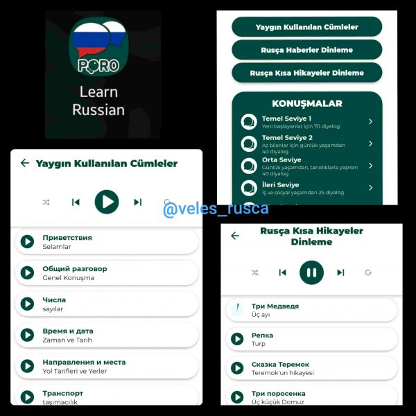 Seviyeye göre kısa hikayeler, haberleri ve diyalogları dinleyerek Rusçanızı geliştirebileceğiniz bir uygulamadır.